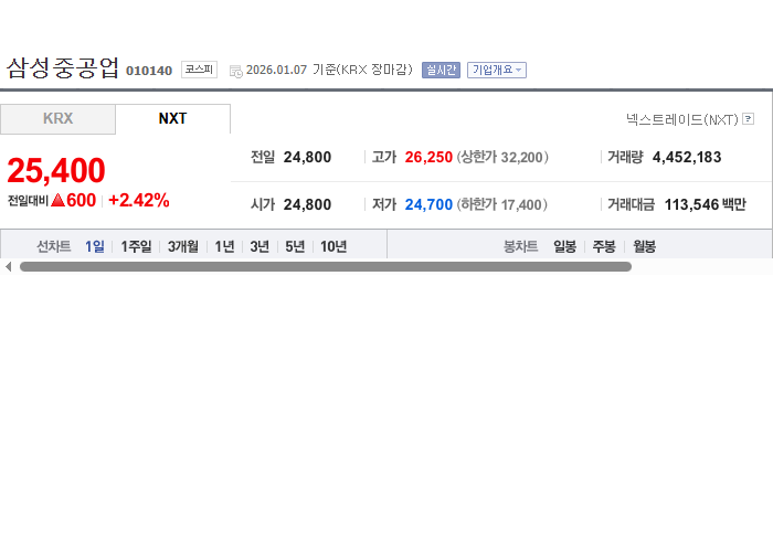 삼성중공업 주식의 재무 상태